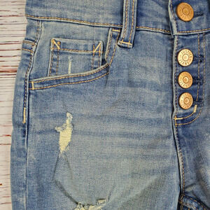Justice High Waist Denim Jean Short Girls 8 Blue Distressed Raw Hem Stretch NWT