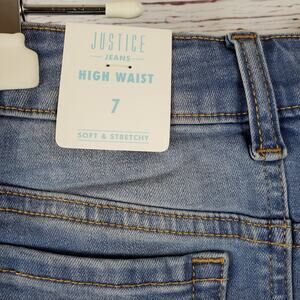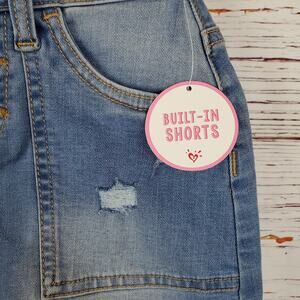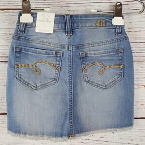 Justice High Waist Distressed Raw Hem Denim Skort Girl 7 Blue Stretch NWT