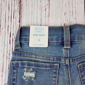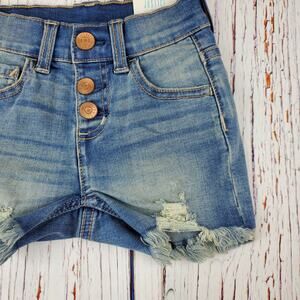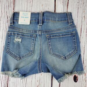 🔴 Justice High Waist Jean Short Girl 6 Blue Raw Hem Distressed Snap Close NWT