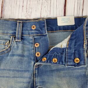 Justice High Waist Jean Short Girl 6 Blue Raw Hem Distressed Snap Close Stretch