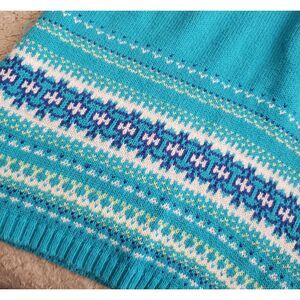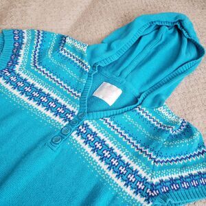 Super cute short sleeved lightweight hooded sweater dress with Fair Isle pattern. Very good condition.