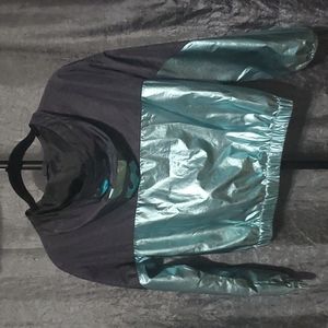 Light Hooded jacket. Dark grey/teal color. Size 10. 100%Polyester.