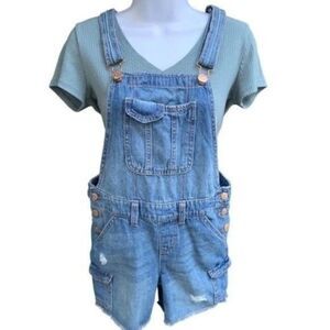 Justice Jeans Blue Denim Overalls Bib Shorts Youth 16y