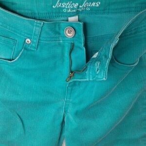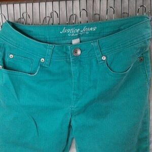 Justice Jeans Girls' Capri Stretch Simply Low Jeans Size 12.5 in gorgeous Turquoise Green.