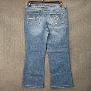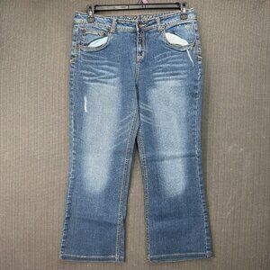 Justice Jeans Girls Size 18 1/2 Blue Bootcut Distressed Denim Jean Cotton Blend