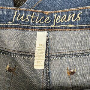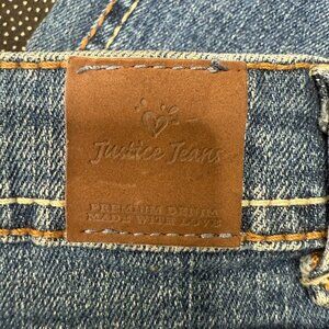 • Embroidered Justice Jeans logo on waistband