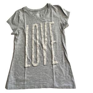🌴 Justice LOVE written in lace Graphic Tee Girls 8 Grey