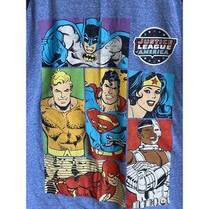 Justice League America DC Comics Men's XL Blue T-Shirt Ringer Tee