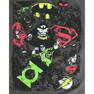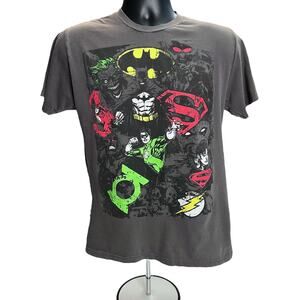 Justice League Gray T-Shirt - Batman, Superman, Flash - Size Medium - DC Comics