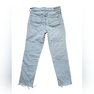 Trendy light blue jeans. Distressed style with frayed hems. Perfect for casual wear.