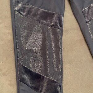 Gently worn, Justice (Mall Days) blue, size 8 leggings and size 28 sports bra. Both feature shimmer and velvet color block designs.