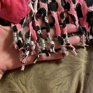Pink, black, white, silver and clear stones.