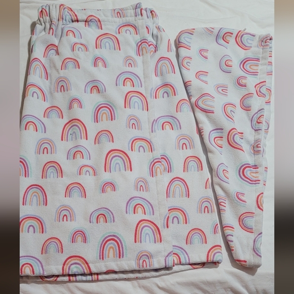 Soft bathrobe with vibrant rainbow design. Perfect for comfort and style. It fits a small-medium adult or a teen.