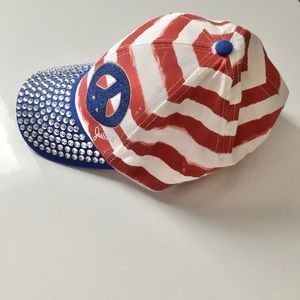 Justice Patriotic Blinged Peace Hat Red White Blue Silver OS