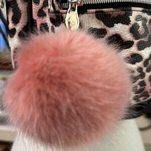 Justice Pink/Black/White Animal Print w/Pom Pom Backpack Faux Fur