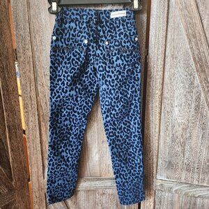Justice Premium Jeans Blue Leopard Print Textured Velvet Size 7S Simply Low EUC