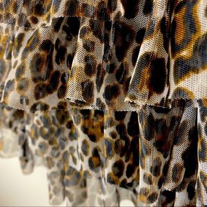 Color: ruffles are sheer leopard print + skirt features a black slip over black shorts.