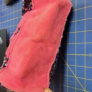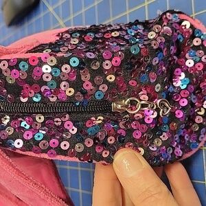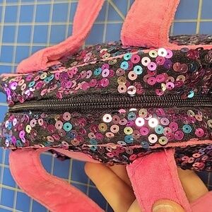 Justice Shimmering Mini Velvety 8" x 4" x 6" Bag Pink Straps Sequins Initial K