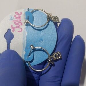 Justice Silver-tone Hoop Earrings Sparkling "B" & star-shaped charms - Girls