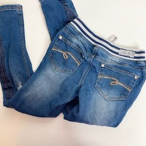 Justice Size 8 Girls Jeans Pull On Drawstring Simply Low Embellished Distressed