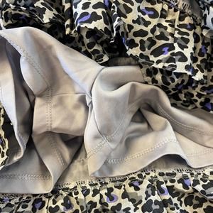 Cheetah print Gray, tan, black and purple frilly skirt part