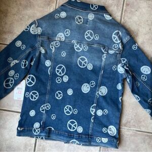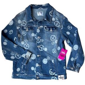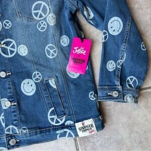 Justice Stranger Things Limited Discharged Denim Jacket Peace Smiley Face Sz XL