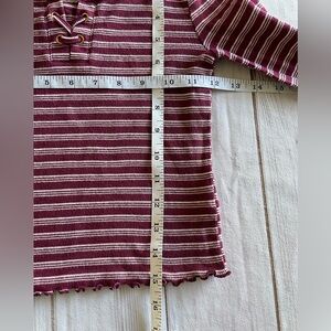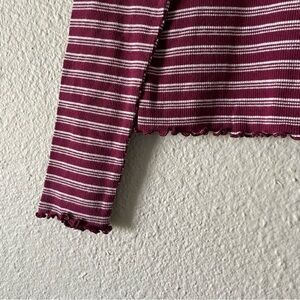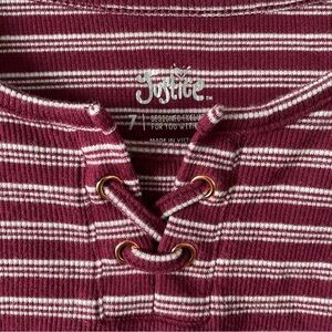 Justice Striped Top Girls 7 Maroon White Lettuce Edge Long Sleeve Shirt