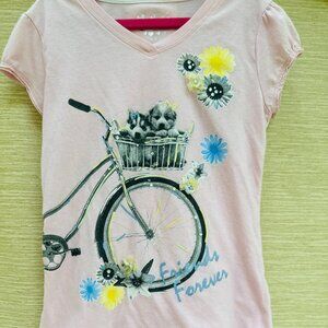 Justice T-Shirt Puppy Flowers Glitter Bike Tee Cute Saying Friends Forever