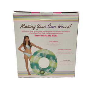 Justice Teal Ombre Palms Tube Pool Float 39" Supports up to 220lbs Repair patch included Comfortable - Soft, jersey mesh fabric design provides for a comfortable and relaxing experience on the water Durable Construction - Durable PVC material and welded seams provide an airtight seal for extended use Color - Green Teal Ombre Palms For Kids & Adults Ages 6+ Unisex