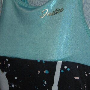 Justice Turquoise Black White Splotches Leotard L(12-14)