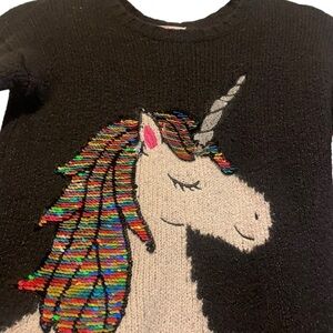 Justice Unicorn Reversible Sequin Black Sweater Girls Size 10, multicolored or silver sequins on this knit crew neck sweater