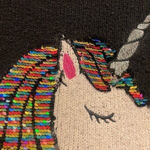 Justice Unicorn Reversible Sequin Black Sweater Girls Size 10, multicolored or silver sequins on this knit crew neck sweater
