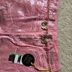Justice Wicked Shiny Pink Pants with Gold Chain Detail