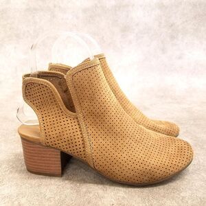 Justice Womens Size 5 Tan Perforated Block Heel Ankle Boot Back Cut Booties
