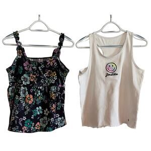 Justice XL Plus Bundle – Floral Ruffle Strap Top & Smiley Face Ribbed Tank