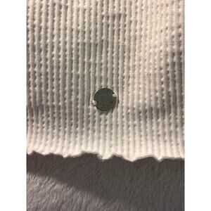 2.	Top 2: A white ribbed racerback tank with a pastel ombré smiley face and “Justice” script on the front. Features a raw lettuce-edge hem for that playful, Y2K-inspired vibe.