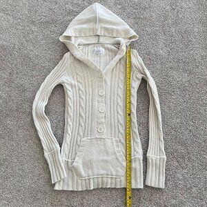 Justice Y2K Cable Knit Hooded Button Up Glitter Thread Ivory Cream Sweater XS