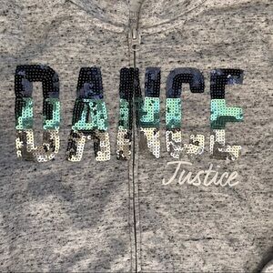 Justice active girl gray hoodie w/ sequin blue silver dance theme Sz 12/14