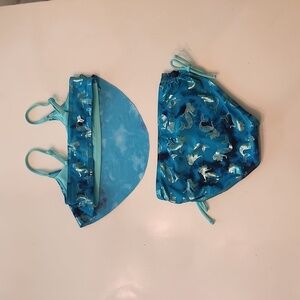 Justice blue Mermaid print bikini bathing suit size 10. Very good pre-owned condition. Smoke free pet friendly home. Please see pictures for measurements. Adjustable straps. 10 blue bikini bathing suit Mermaid Justice
