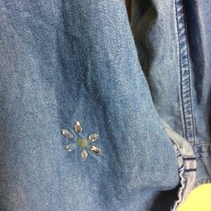 Justice blue denim/chambray long sleeve button down shirt. Embellished. Size 12.