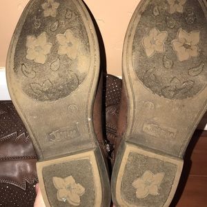 Gently worn girls Justice cow girl boots. With rhinestones in design. Size 9. Gorgeous design on both sides of the boot. Zipper for easy on and off!