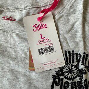 Justice girls size large long sleeve graphic tee shirt in gray with glitter
