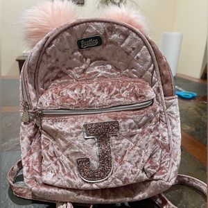 Justice mini girls backpack with “J” initial.