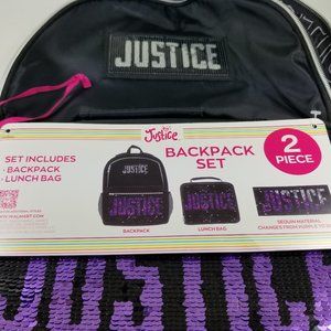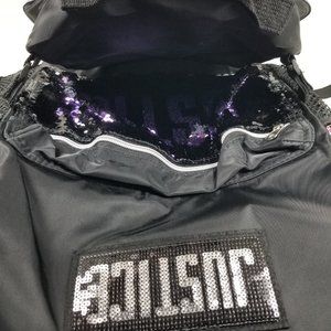 Justice reversible Sequin Backpack and Lunch Tote 2-Piece Black Purple Silver