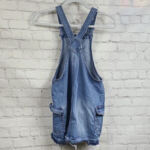 Justice Girls Overalls Cutoff Blue Jean Dress Distressed Denim Cargo Pockets 10