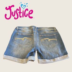 Nice! pair of Justice girl's plus distressed denim 5 pocket shorts.