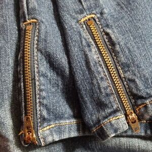 Premium Denim Jeans with front and back pockets and zippers at the end of each leg.