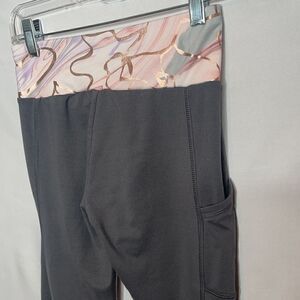 Justice Metallic Rose Gold/ Grey Leggings. Size 12. Criss Cross bottom legs. Pockets on sides. Excellent condition.