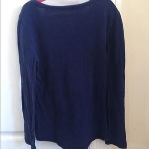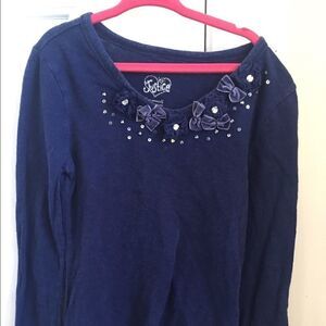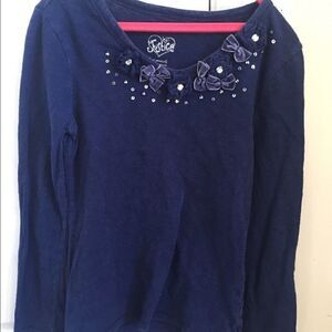 Girls size 7 long sleeve navy blue shirt with bows and rhinestones.