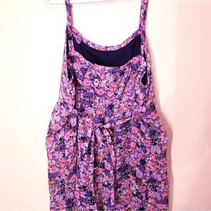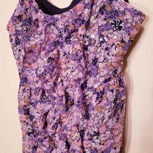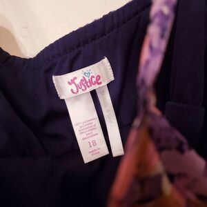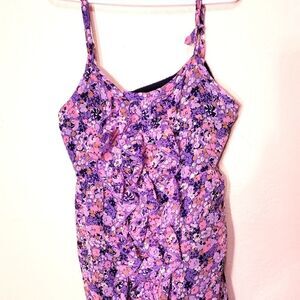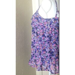 Pre-owned spaghetti strap ruffled front tie back loose flow top pink purple one broken strap tied knot spring summer cute girls top Justice size 18 pre teen